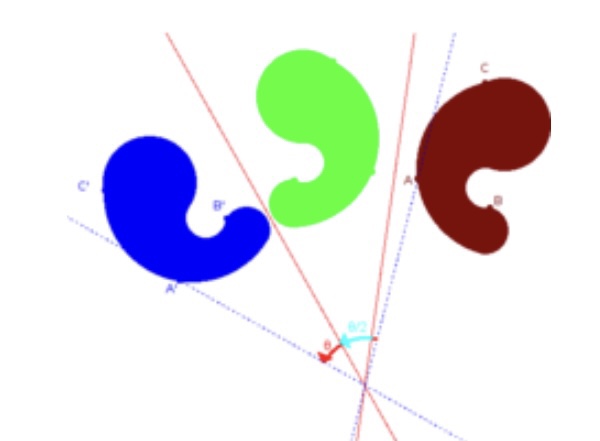 أن تابع الانعكاس على محورين متوازيين يسمى: “انتقال” (translation). انعكس الشكل البني فنتج الأخضر ثم انعكس الأخضر فأنتج الأزرق والانتقال هو من البني إلى االأزرق.